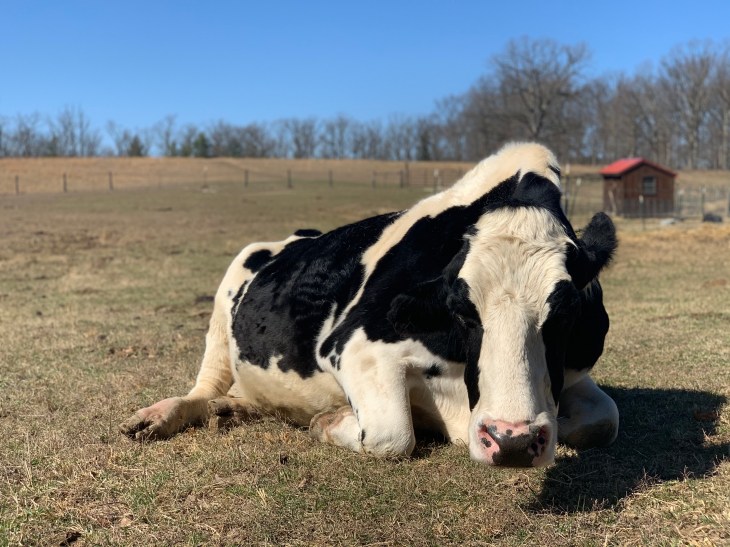 Our gentle giant Watson, was rescued from the dairy industry in West Virginia. After a stay at a foster family, he eventually found his way to Peaceful Fields Sanctuary to live out the rest of his days.