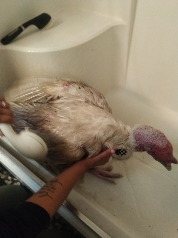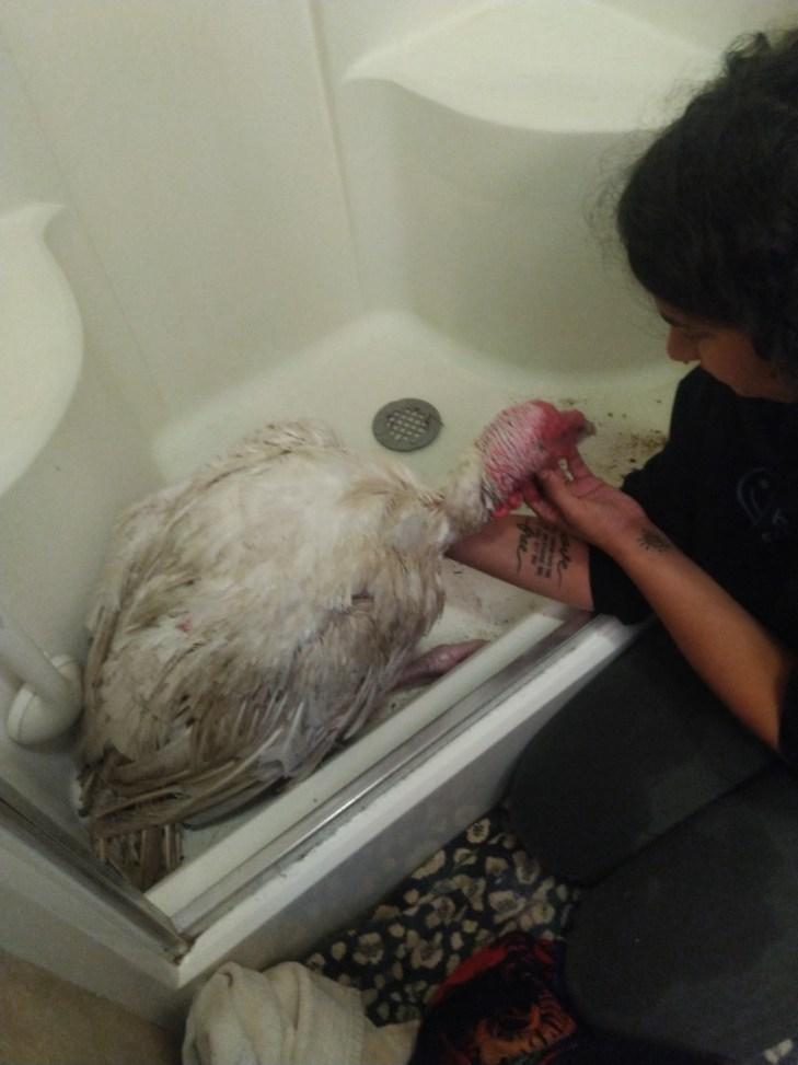 Turkeys have over 20 different vocalizations they can make and, like us, their face can change color when excited or stressed. Bruce is very expressive both vocally and visually – it’s clear when you meet him that this sweet boy truly wears his heart on sleeve!